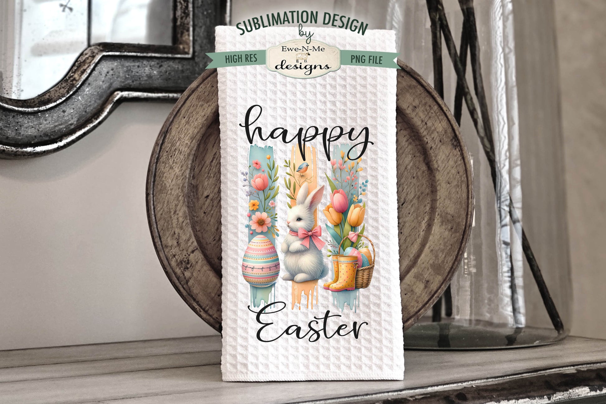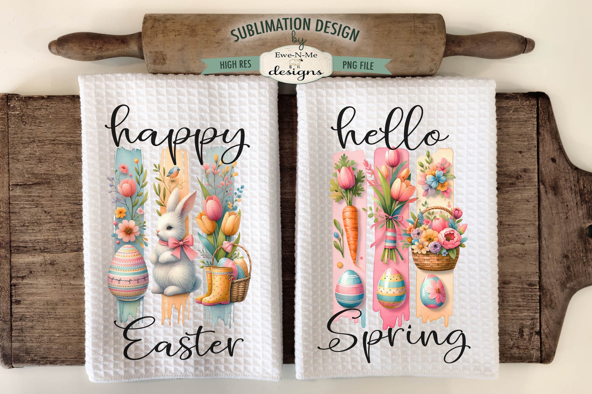 Easter Brush Stroke Bunny Flowers - Kitchen Towel Sublimation Designs