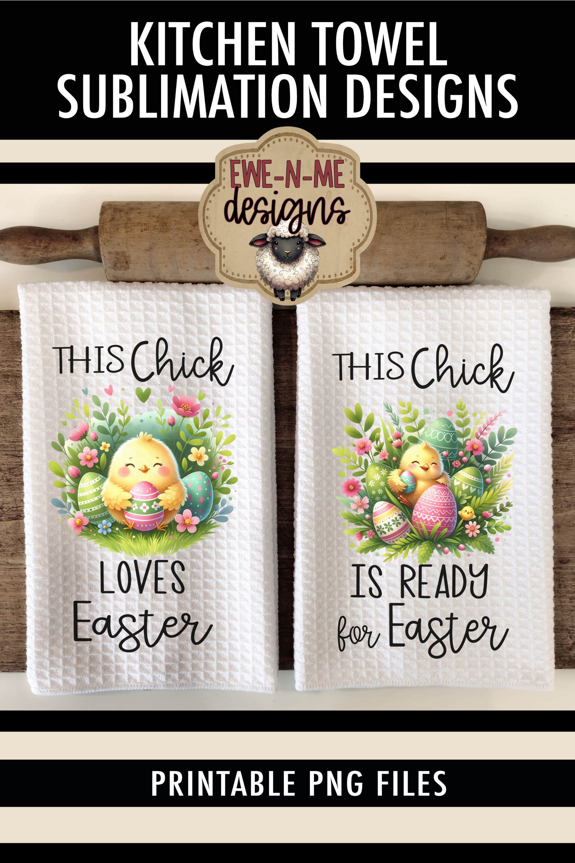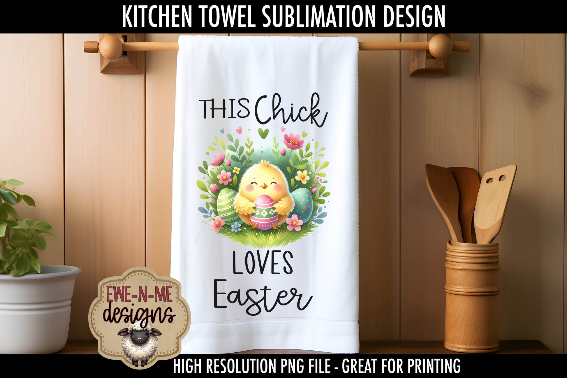 Easter Chick With Decorated Eggs - Kitchen Towel Sublimation Designs