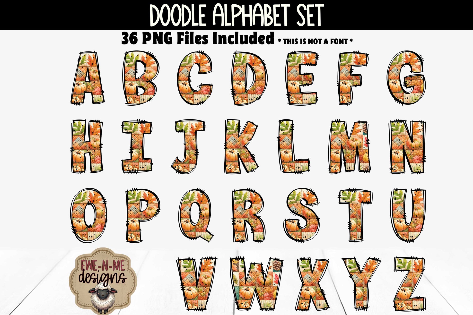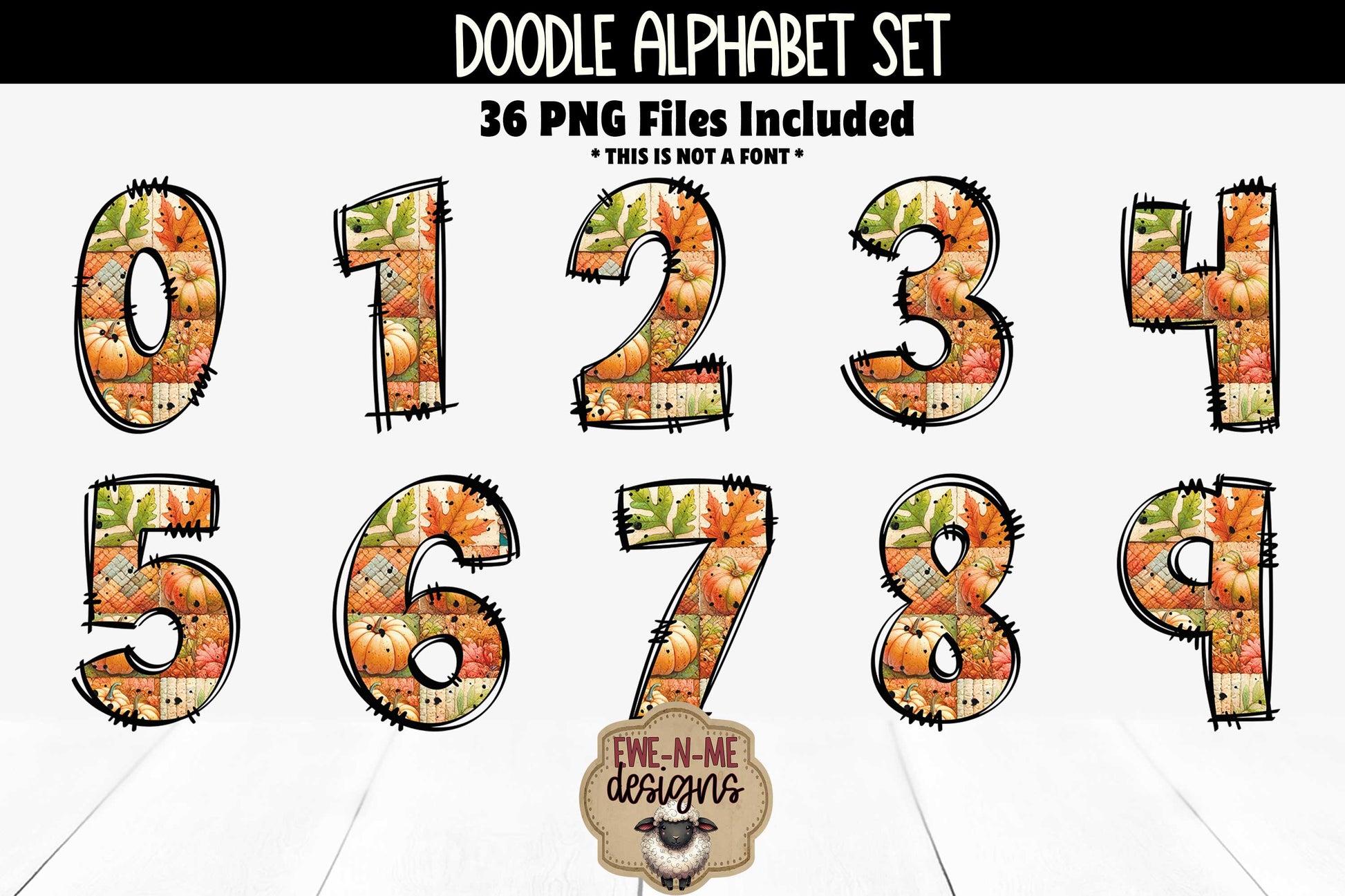 Fall Patchwork Doodle Alphabet and Numbers | PNG Files
