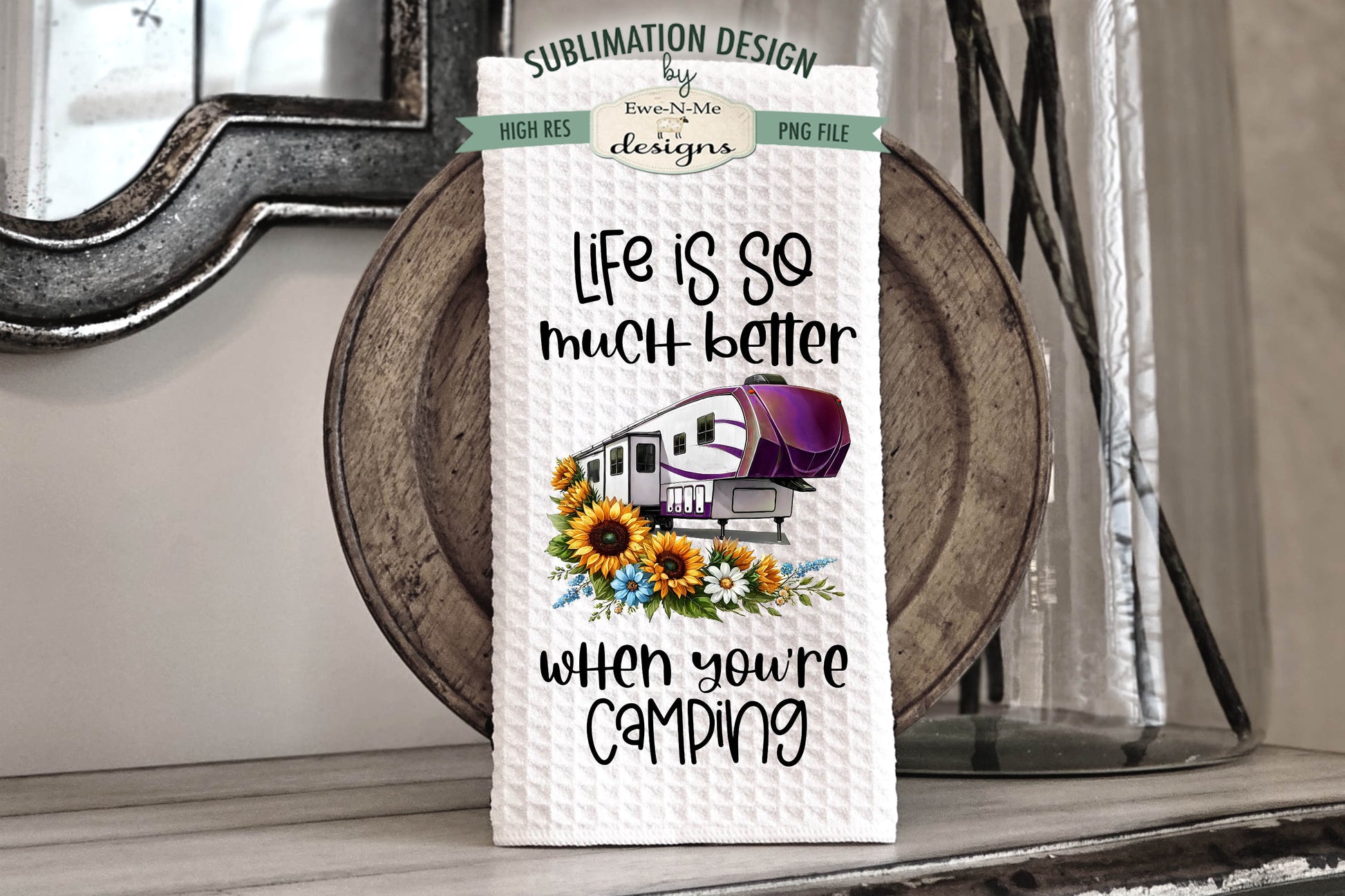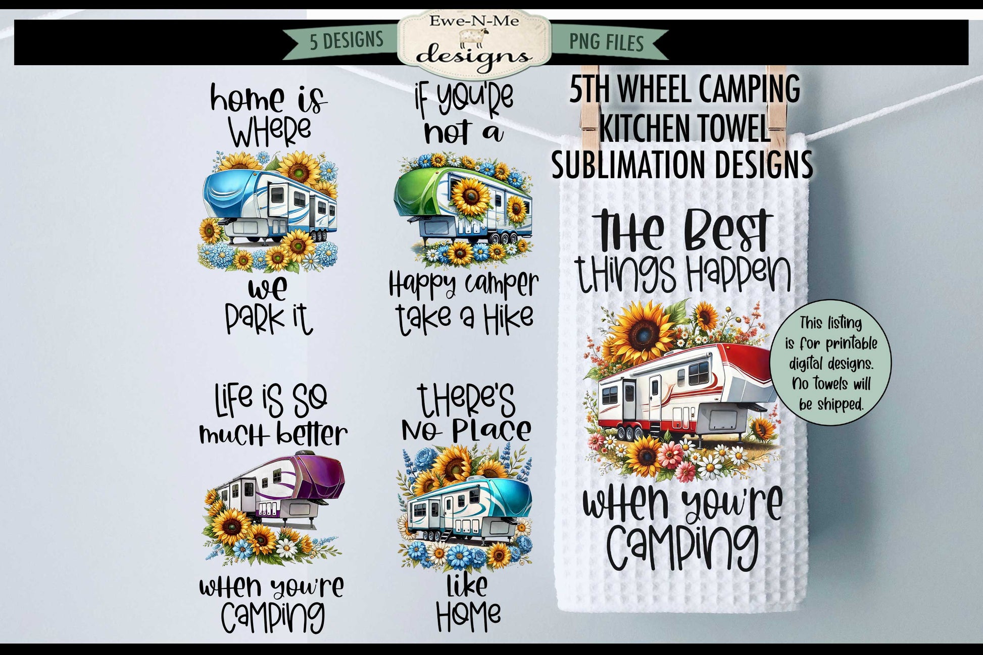Fifth Wheel Campers with Flowers - Bundle of 5 - Kitchen Towel Sublimation Designs