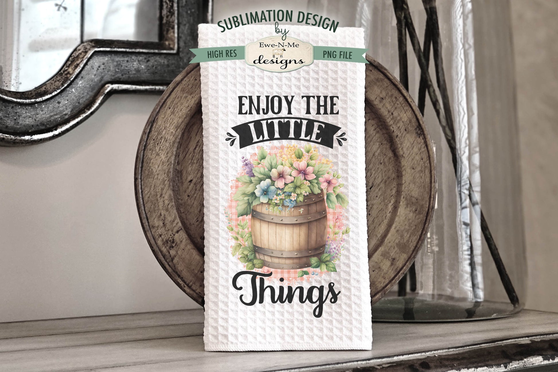 Flowers In Barrels - Kitchen Towel Sublimation Designs