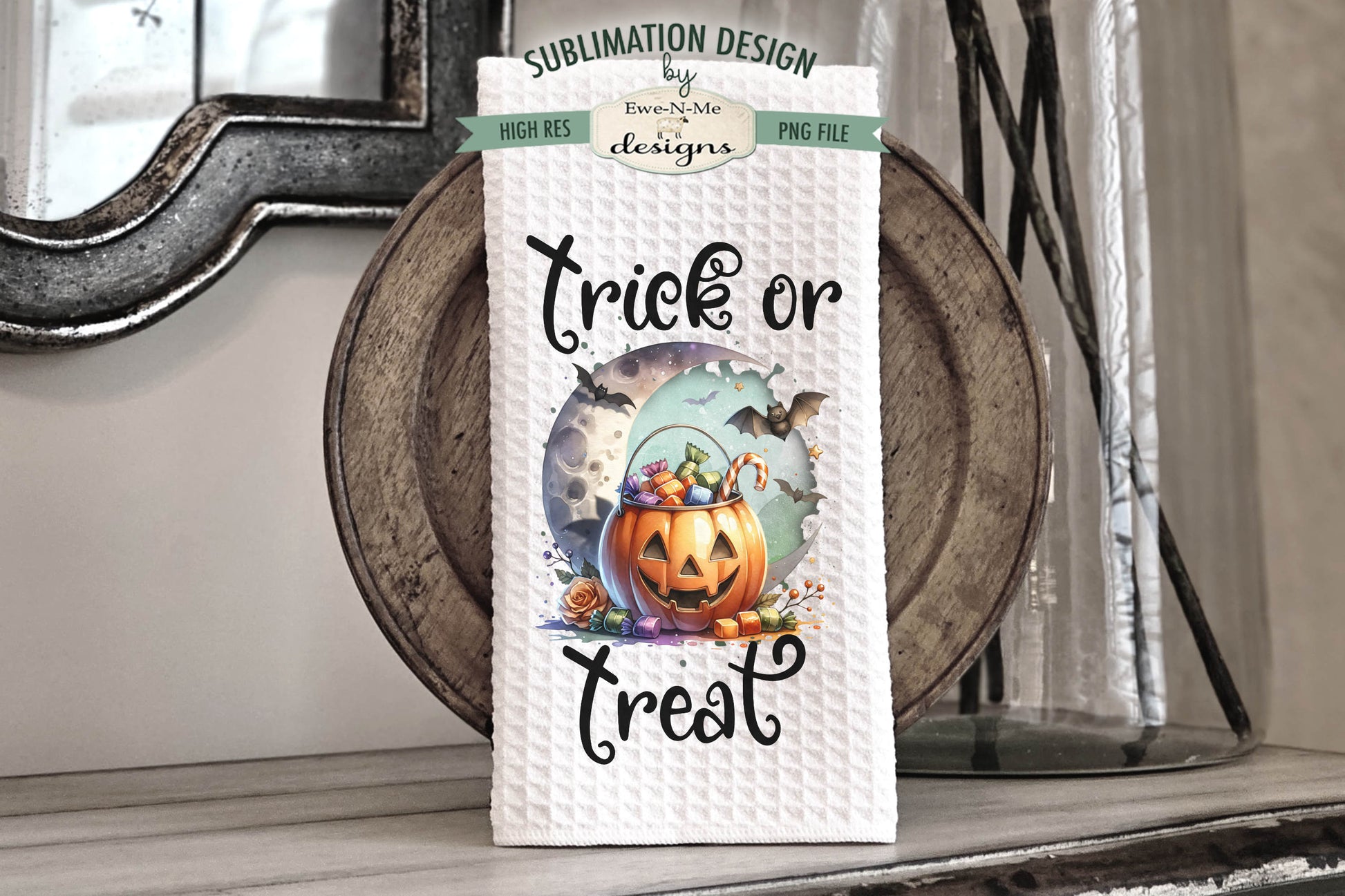 Pumpkin Moon Trick or Treat - Kitchen Towel Sublimation Designs