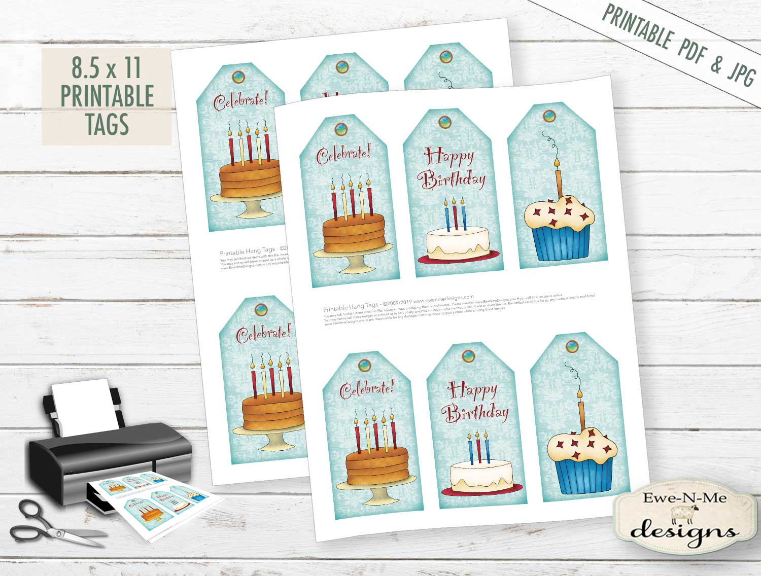 Happy Birthday Tags - PRINTABLE PDF and JPG