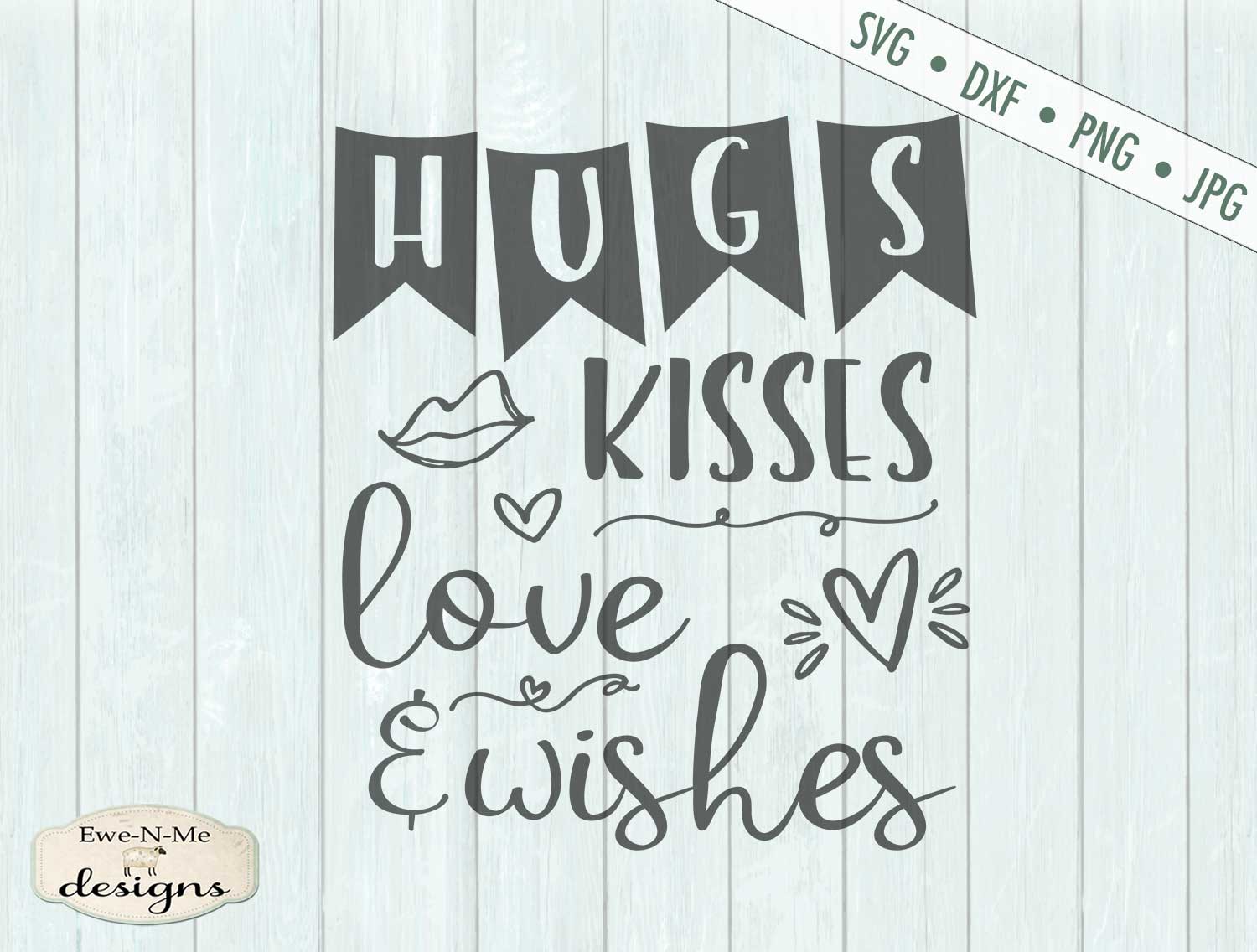 Hugs Kisses Love Wishes - Valentine's Day - SVG, DXF, JPG, PNG