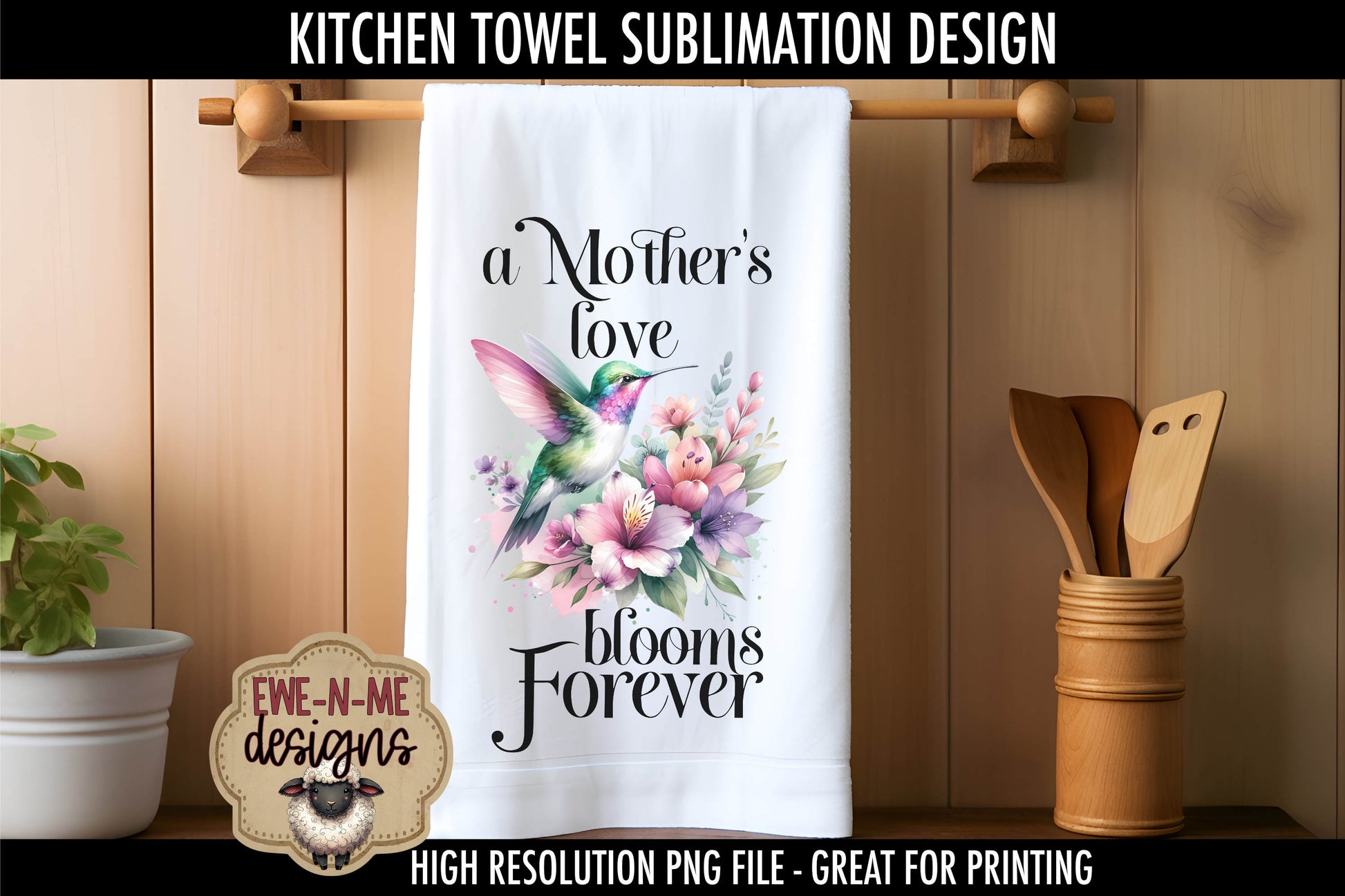 Mothers Day Hummingbird Flowers - Kitchen Towel Sublimation Designs