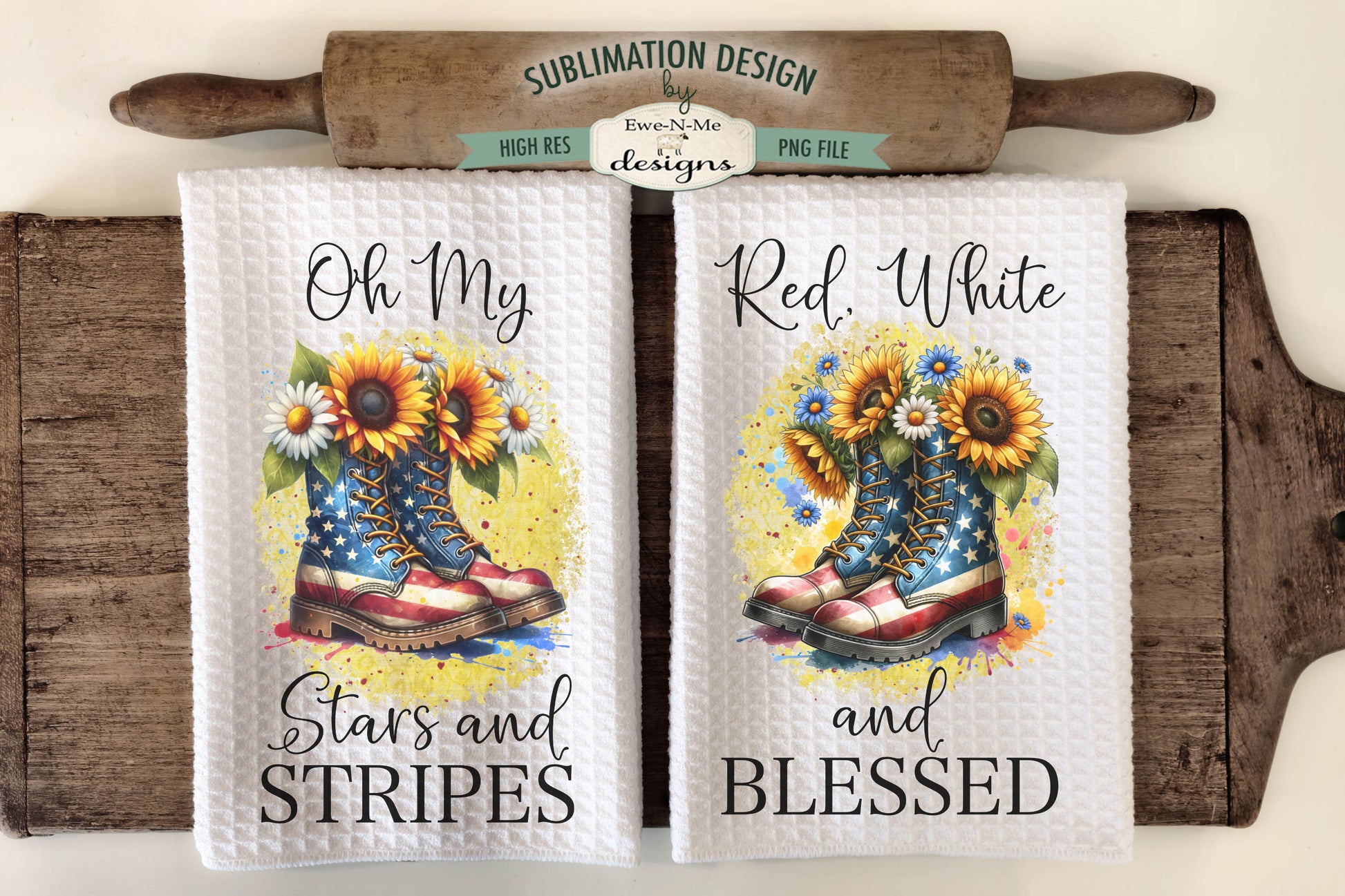 Patriotic Boots and Flowers - Kitchen Towel Sublimation Designs