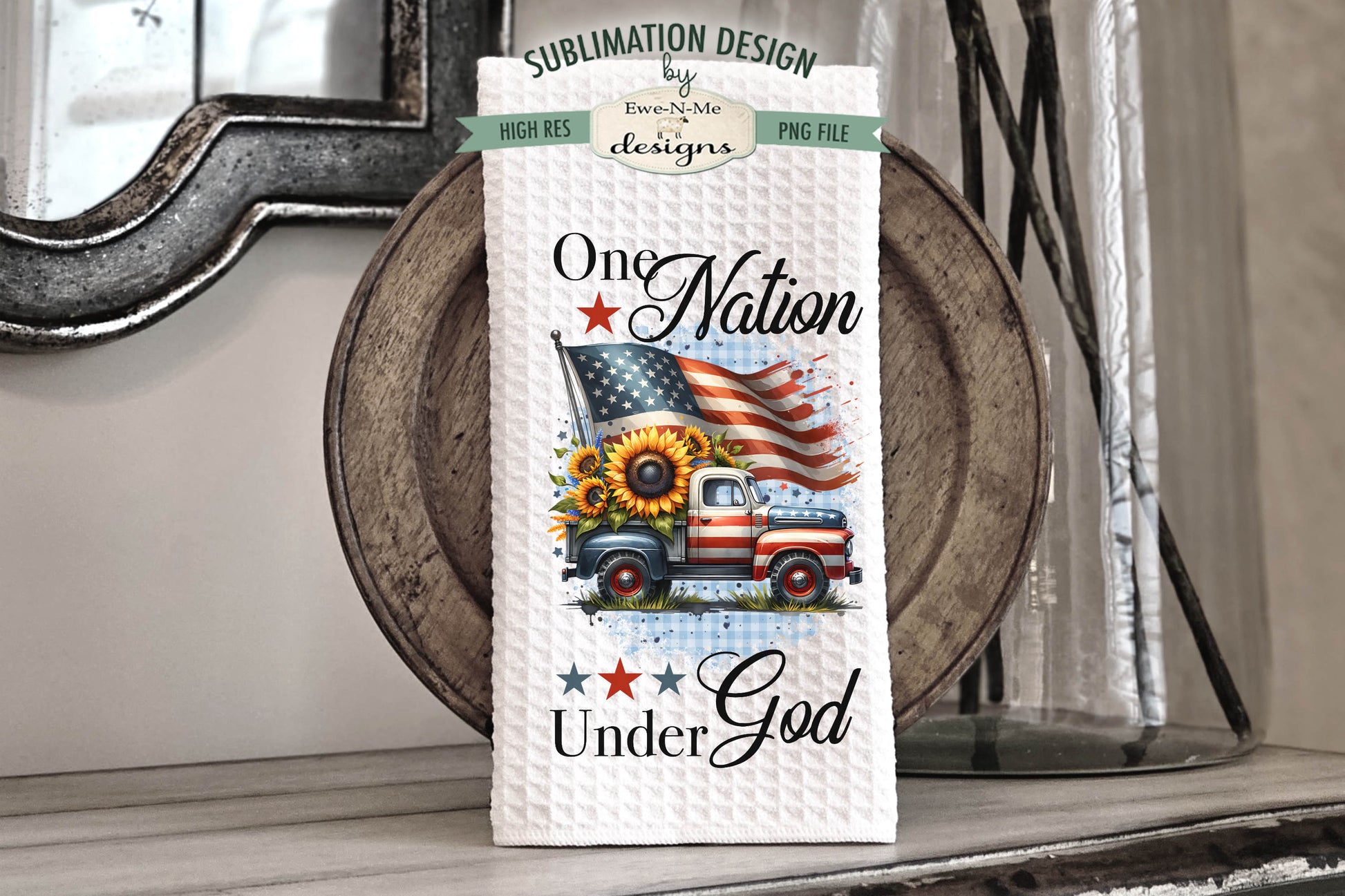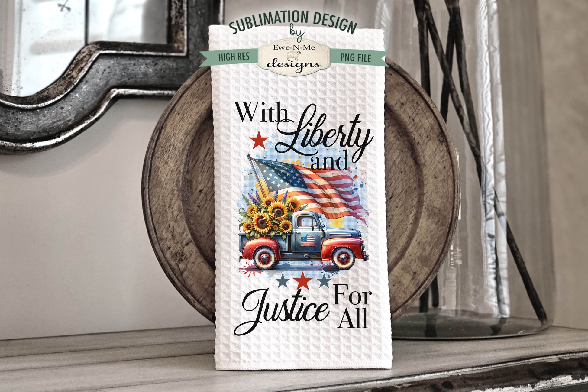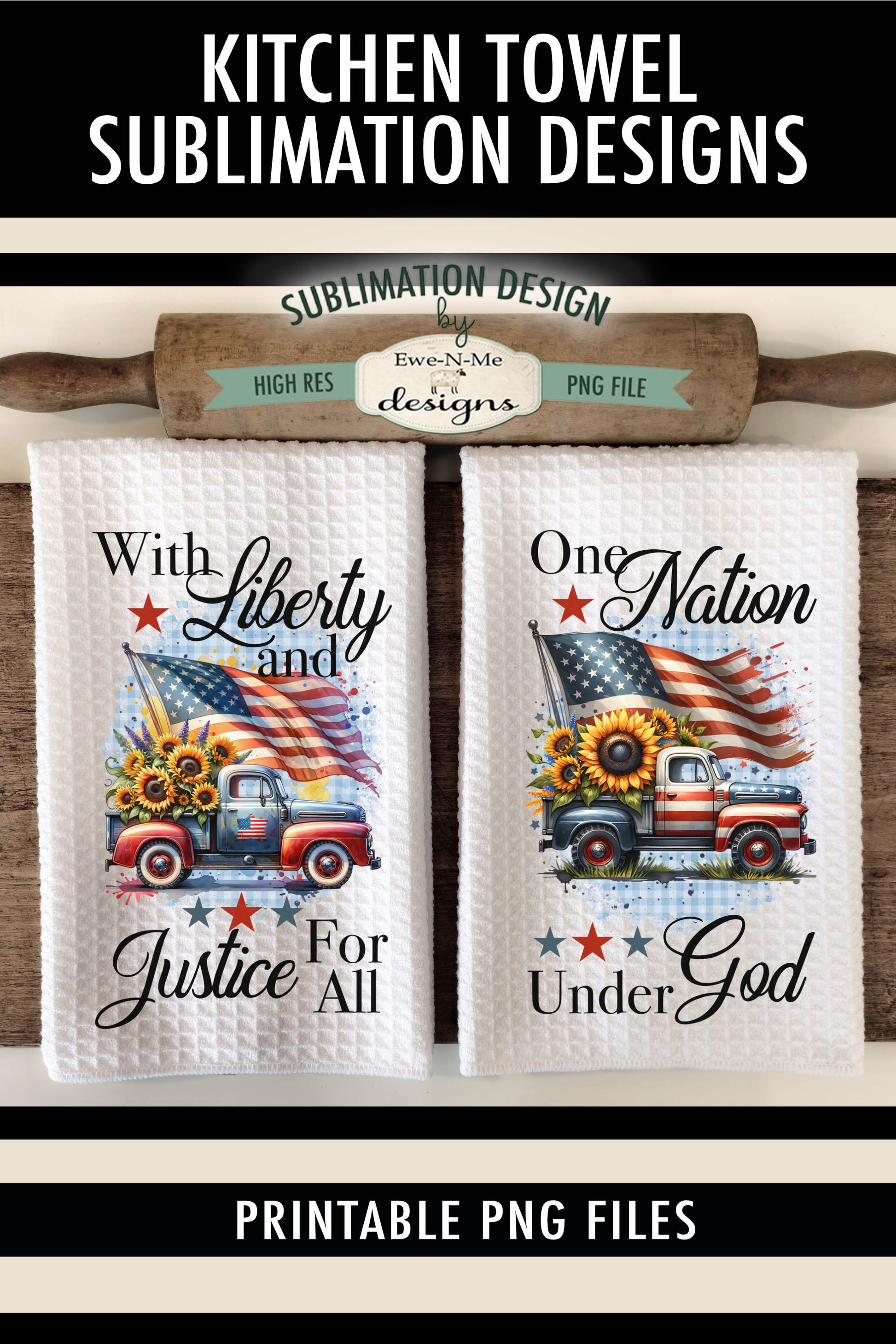 Patriotic Trucks With Sunflowers - Kitchen Towel Sublimation Designs