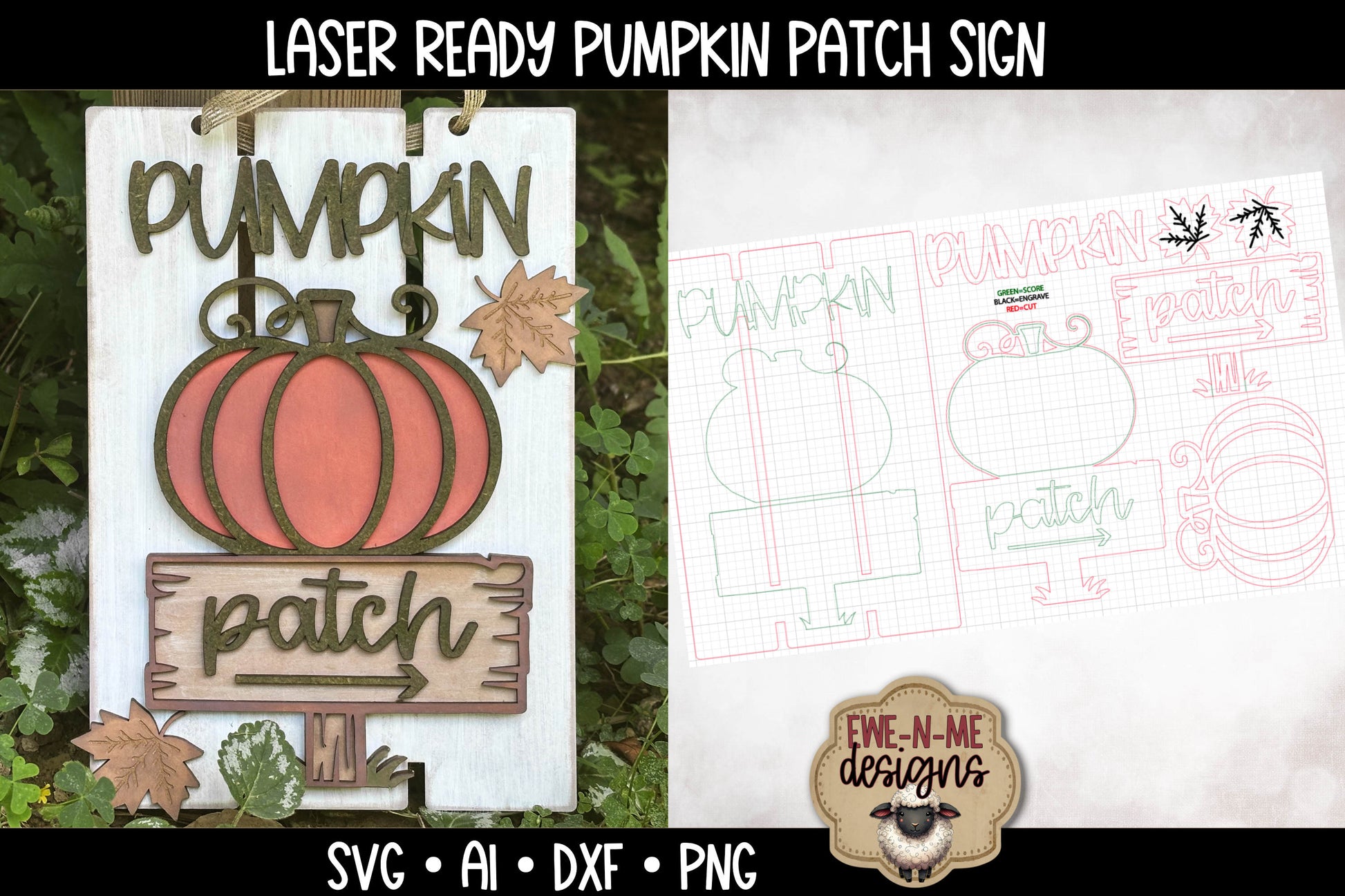 Pumpkin Patch Pallet Sign Door Hanger - Laser Cut SVG