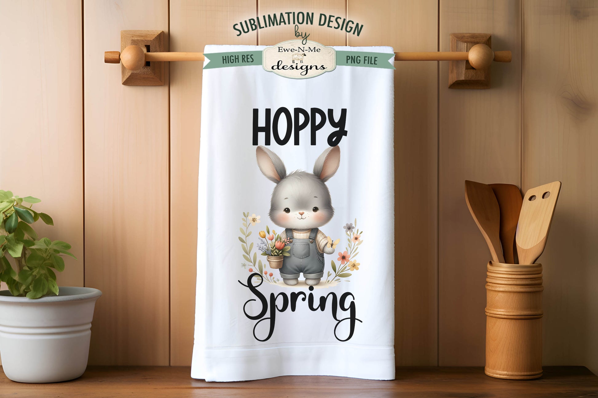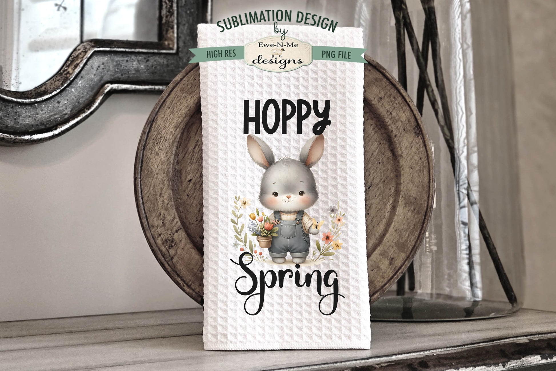 Spring Easter Bunny in Overalls - Kitchen Towel Sublimation Designs